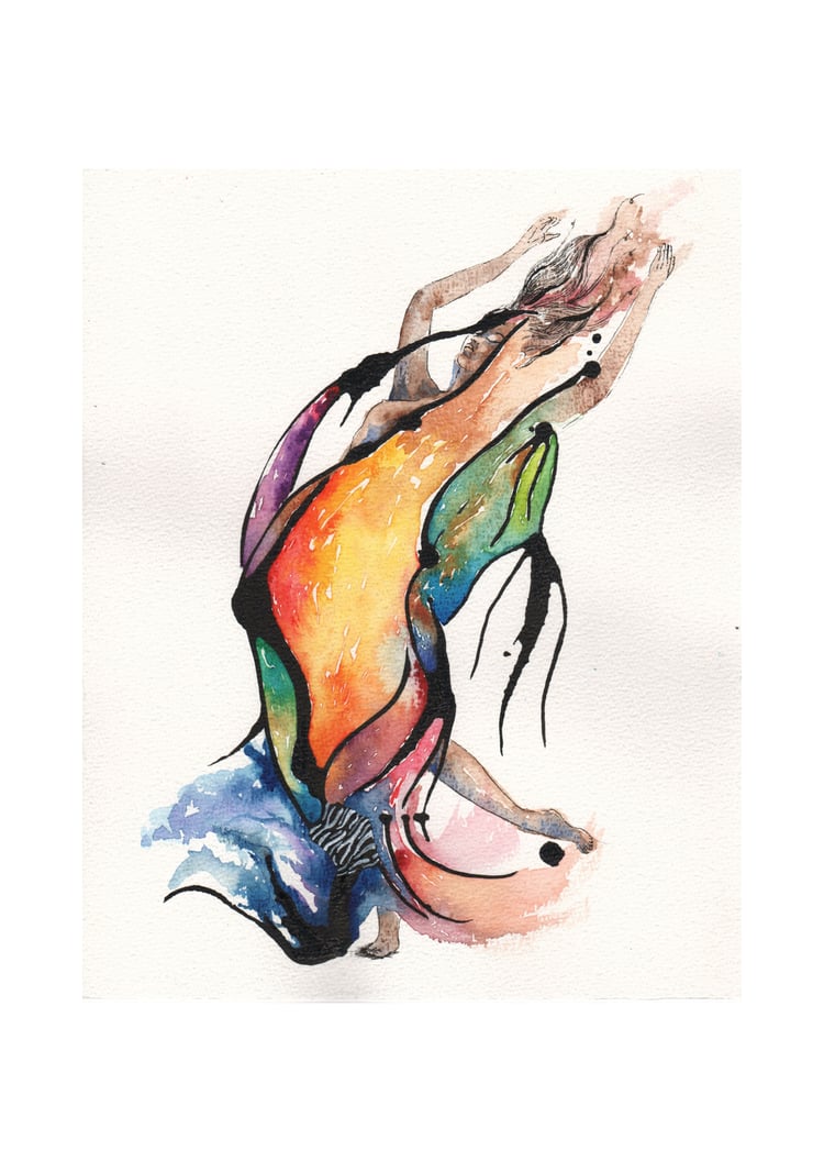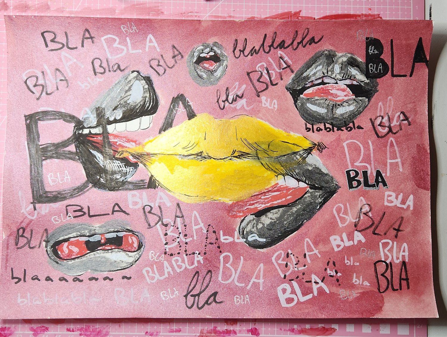 Ik ben roekeloos te werk gegaan. Niet te lang stilgestaan bij mijn akties. En eerlijk? Eigenlijk voelde ik helemaal verwilderd na het creëren van dit schilderij. Het voelde heel bevrijdend! Het was een nieuw avontuur voor mij.